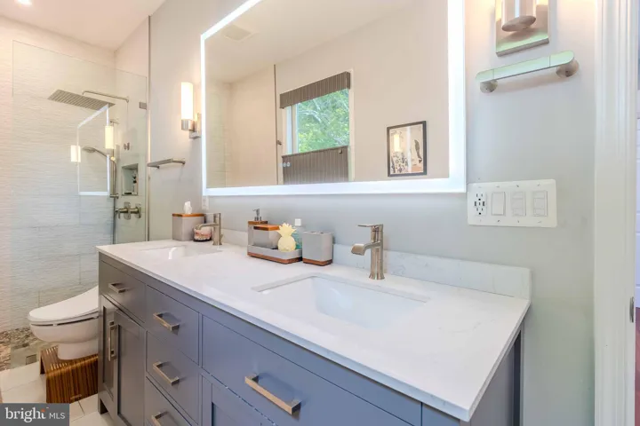 Welcome to 942McKinley Rd, Arlington – a one-of-a-kind smart home that combines luxury, functionality, and cutting-edge technology. This extensively renovated and expanded property (2021) offers LED ceiling speakers in most rooms, Lutron smart switches, Ring doorbell and floodlight cameras, Ecobee and Flair smart thermostats, and a HEOS (Denon/Marantz) whole-house audio system with Dolby Atmos surround sound in the home theater, ceiling speakers in the primary bedroom and bathroom, and outdoor speakers/subwoofers on the deck and by the hot tub (audio equipment included with the rental). The fenced backyard features mature evergreens for privacy, a smart-controlled fountain, deck with smart string lights and large patio umbrella, and a hot tub with monthly maintenance included in rent. A detached 8×8 finished shed offers HVAC and electric—perfect for a home office. The 2021 renovation added a new primary suite with triple glass doors, transom windows, and a modern glass-riser staircase to maximize natural light. The spa-like primary bath includes smart heated tile floors and a heated bidet seat with warm water on demand. A newly completed in-law/au pair suite (June 2025) includes a 4×4 walk-in shower, heated tile floors, and a smart vent/light with Bluetooth speaker. There are four full bathrooms in total, including one with a tub and heated bidet upstairs and another full bath in the laundry room. Energy-efficient solar panels generate approximately $1,700/year in electricity, reducing your power bill by about $140/month. The home is fully wired with 2.5Gbit Ethernet and a central switch. The property also features a 4-car driveway, a professionally landscaped yard, and an excellent location just 1.1 miles (mostly trail) to East Falls Church Metro Station in a safe, highly desirable neighborhood.