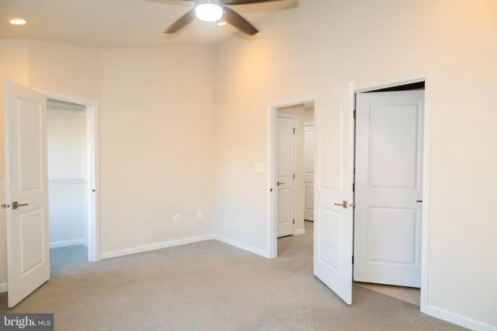 Upstairs, you’ll find upgraded carpeting throughout the hallway and bedrooms. The upper level boasts two spacious bedrooms—each with its own attached full bath and ceiling fan—as well as a convenient laundry room. Recessed lighting enhances every room, while the owner’s suite features a modern en-suite bath with a standing shower.