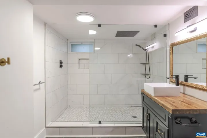 Charming Cape Cod in desirable Charlottesville location! This well-maintained home features beautiful hardwood floors throughout, updated kitchen with white cabinets & stainless dishwasher & microwave plus a stunning renovated bathroom with walk-in shower & modern finishes. The main level offers bright living spaces while the finished basement provides the primary bedroom, rec room perfect for office, washer, dryer, and plenty of storage. Outside, enjoy the private deck overlooking a spacious yard surrounded by mature trees. Stone steps and landscaping add curb appeal to this move-in ready gem. Convenient to UVA, downtown Charlottesville , and all Charlottesville amenities. Don’t miss this opportunity! *and* terrace level was a highly profitable AirBnB for several years.,Formica Counter,Wood Cabinets