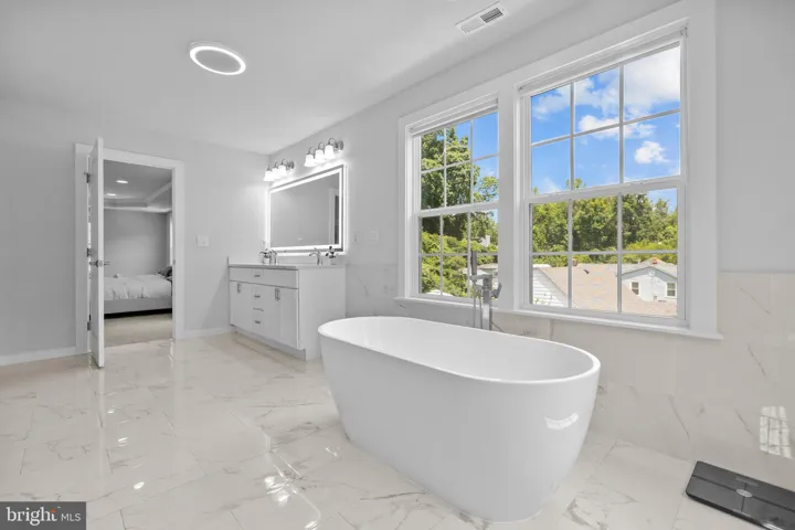 Upstairs, the expansive primary suite offers two walk-in closets and a spa-style en-suite bath featuring separate stand alone tub, frameless shower doors and enormous shower with double shower heads along with seating. Two additional generous bedrooms, a full hall bath, and an upper-level laundry room complete this floor.