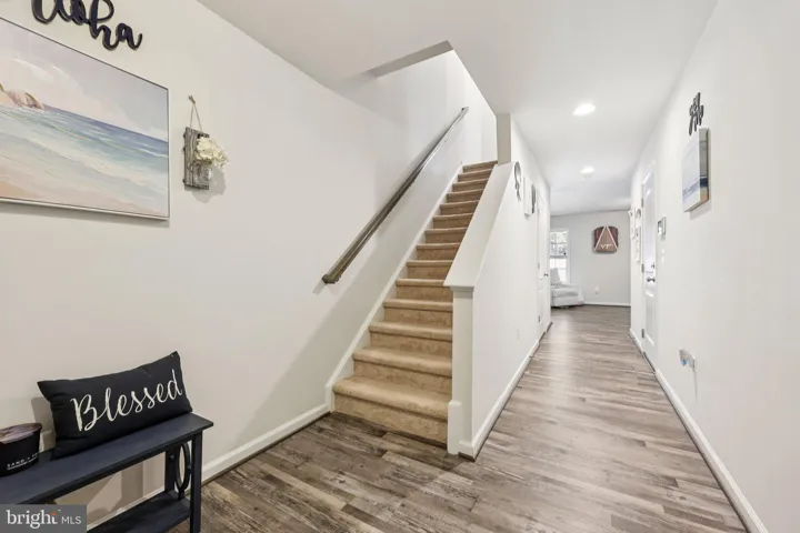 Tucked away in the desirable Regency Crossing community, this 2020-built residence offers modern comfort and elegant upgrades throughout. Ideally located just five miles from historic downtown Fredericksburg, with easy access to major roadways and highways and near a brand‑new shopping center and Publix, this home blends convenience with charm. Step inside to discover luxury vinyl plank flooring spanning the entire first floor and leading upstairs, providing both durability and seamless flow. The heart of the home is the oversized island kitchen, showcasing gleaming granite countertops, a full-height tile backsplash, and contemporary lighting that highlights every surface. Updated bathroom vanities in all bathrooms feature quartz countertops, complemented by newly replaced shower heads, fixtures, and faucets for a fresh, spa-like feel. Retreat to the primary suite, where an accent wall creates a sophisticated focal point and elevates the room’s ambiance. Outside, the stamped concrete patio offers a stylish outdoor living area perfect for entertaining or quiet relaxation. With thoughtful finishes and attention to detail at every turn, this home combines turnkey appeal with designer touches in a well-maintained, community-minded setting.