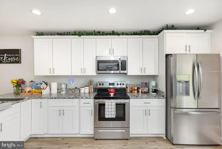 Step inside and you’ll immediately notice the thoughtful attention to detail. Luxury vinyl plank flooring flows through the main living spaces, while plush upgraded carpet adds warmth to the bedrooms. The kitchen features granite countertops, stainless steel appliances, and a layout designed for both everyday comfort and entertaining.