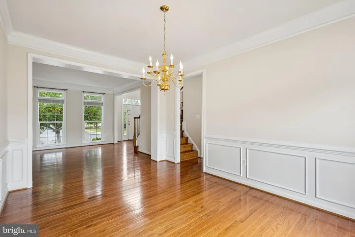 The main level boasts gleaming hardwood floors throughout, a private home office, and a spacious living and dining room combination highlighted by elegant wainscoting. The gourmet kitchen features an oversized island, abundant cabinetry, and opens to a cozy family room with a gas fireplace—perfect for gatherings and everyday living.