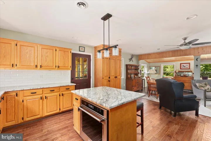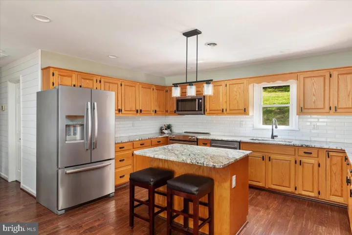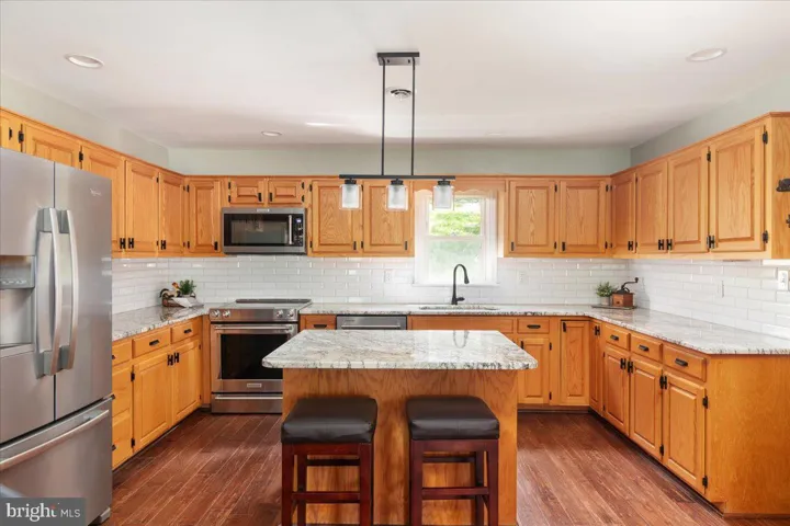 Chef-ready kitchen, featuring stainless steel appliances, subway tile backsplash, granite countertops, and a central island with space for casual gatherings.