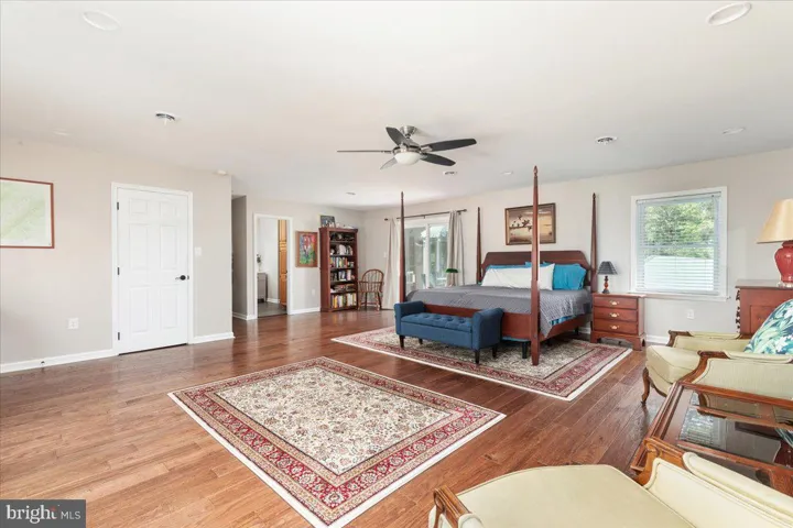 Spacious Primary Suite, with sliding glass doors leading to a private deck, abundant natural light, and a separate sitting area—ideal for morning coffee or late-night stargazing.
