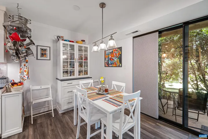A must-see home at Charlottesville Towers, 4 blocks from the Downtown Mall, tucked away in a lovely mature City neighborhood. This condo was completely renovated in 2023, from the studs out… new electrical, plumbing, kitchen, gorgeous! A FEATURES list is included in accompanying documents. Ground level living, with two patios, one off of the primary bedroom – I’m told there are sunsets! The second patio is off of the living area, completely private by virtue of large evergreen Hollies. The two beautiful bedrooms are spacious, the full bath convenient, and the living space is completely separate from the bedroom area – really nicely-designed. Condo fees cover all utilities (water-sewer-natural gas-electricity), except cable. Design is everything when considering square footage, and this 1011 sf is incredibly well-designed… tucked away and private, spacious, really one of the nicest condominiums I’ve ever seen at Charlottesville Towers. — Furnishings may be available, please inquire; and, there is a no-dog policy; cats are allowed, but only medically-required service dogs are allowed.