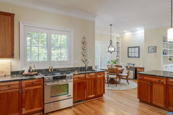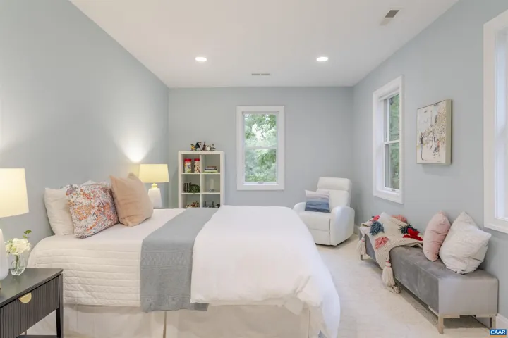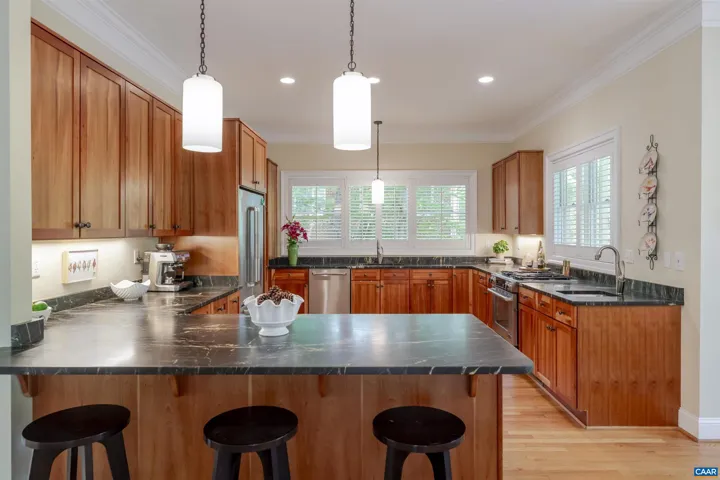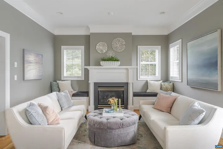 Set on a quiet cul-de-sac in Glenmore, this distinctive four-level home stands apart with its expansive mountain views, stylish updates, and exceptional outdoor living. Enjoy sunsets over Monticello from three levels of outdoor space?perfect for relaxing or entertaining. Thoughtful 2024 upgrades include a new roof with metal accents, updated second-level HVAC, refreshed upstairs hall bath, and a garage outlet ready for EV charging. The main level features generous gathering areas, a cozy library alcove, two fireplaces, and a well-appointed kitchen with cherry cabinetry, quartzite counters, Jenn-Air appliances, and a butler?s pantry. Upstairs you?ll find four bedrooms, including a spacious primary suite with a spa-like bath and access to one of the home?s view-filled decks. The top floor offers a light-filled sitting area and a private office with breathtaking vistas and its own secluded outdoor retreat. The terrace level adds a large rec room, bedroom, and full bath with walk-out access to a fenced yard. A rare blend of character and functionality?just a short golf cart ride to the Club at Glenmore. Current membership qualifies buyer for a 50% discounted initiation fee for club membership.,Fireplace in Dining Room,Fireplace in Family Room,Fireplace in Living Room