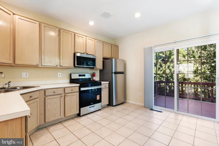 Kitchen flows into a cozy family room and leads to a private deck—perfect for relaxing or entertaining