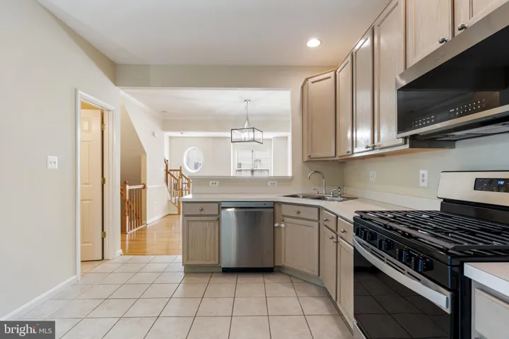 Open-concept kitchen with brand-new stainless steel appliances (Aug 2025):