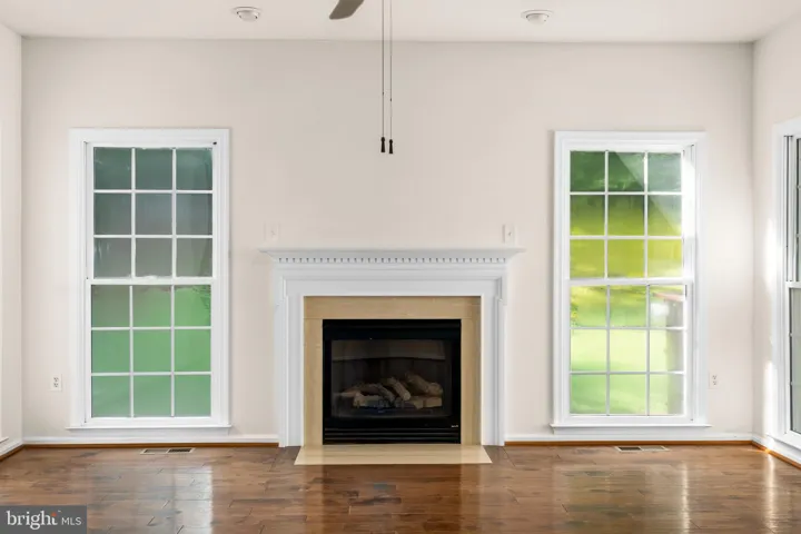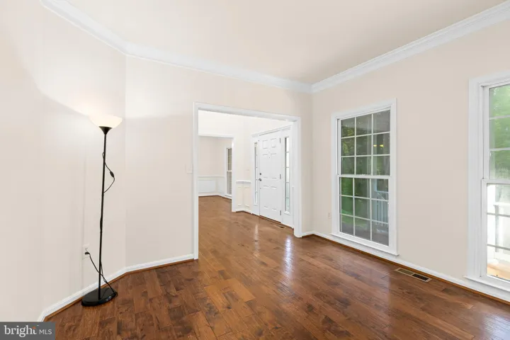 The inviting family room boasts gleaming wood floors and a cozy gas fireplace, while the dedicated office space includes wood flooring and crown molding—perfect for remote work. A rare first-floor bedroom with wood flooring adds flexibility for guests or multigenerational living.