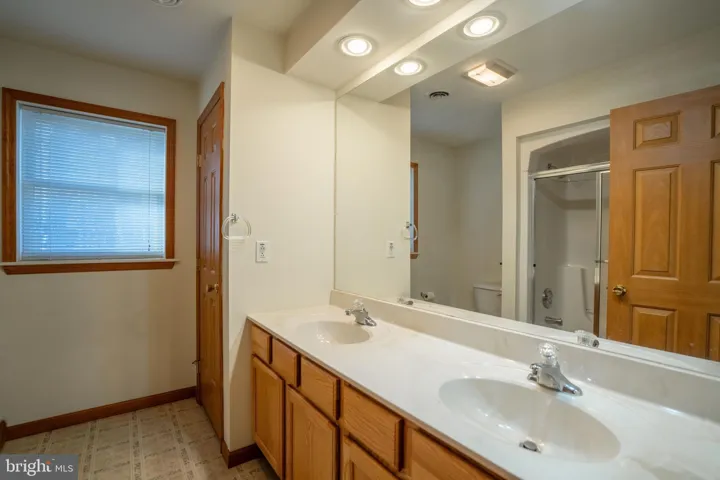 The lower level features a finished full bathroom with a walk-in shower, and a large unfinished rec room with French door walkouts—perfect for use as a gym, media room, or play space.
