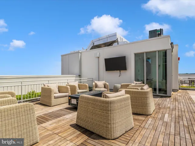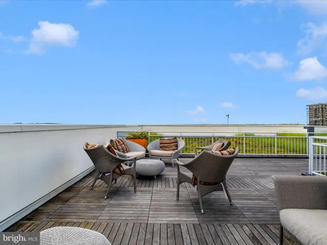 Rooftop terrace with panoramic views of the Potomac, DC monuments, National Harbor, and Old Town skyline as well as :