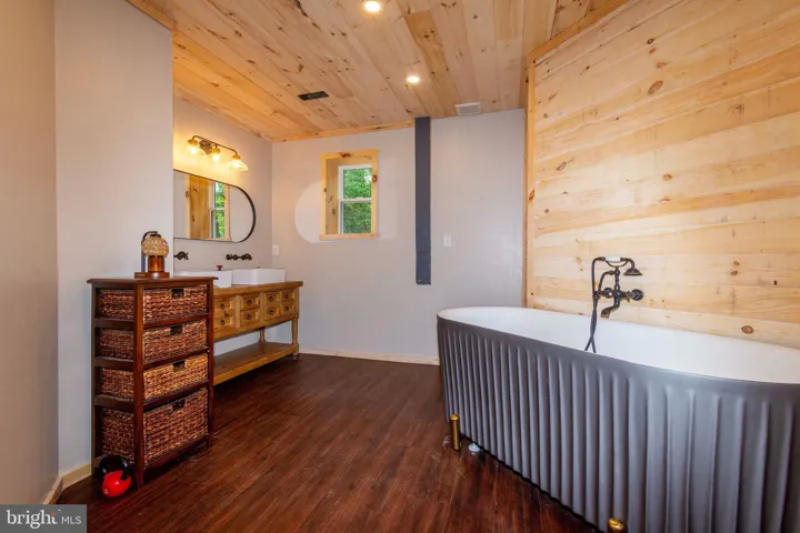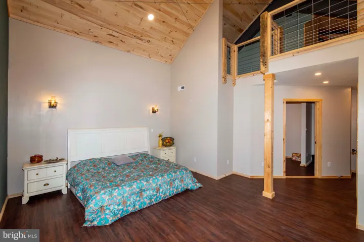 Built in 2023, this stunning custom barndo offers a rare blend of rustic charm and modern craftsmanship. Designed with style and function in mind, the home features a striking metal and wood exterior, durable metal roof, cathedral and two-story ceilings, exposed steel beams, and wood-slatted accent walls that elevate its character. Step inside to a spacious foyer that opens into a light-filled great room with oversized windows and a gas fireplace adorned with decorative wood surround, mantel, and raised hearth. The open-concept kitchen includes an island, pantry, and eat-in area—perfect for everyday living and entertaining. The main-level primary suite offers comfort and convenience two story ceiling and sliding doors to outside, a double vanity, soaking tub, and room for a future walk-in shower. A unique half bath with a petrified wood sink adds personality and warmth. Ideal for multigenerational living or guests, the home is designed with a private in-law suite featuring its own entrance, a mini kitchen and living area, two bedrooms (or one bedroom and an office), and a full bath. Doorways and hallways are wheelchair accessible. Upstairs, you’ll find another bedroom with a private bath and a loft area overlooking the great room—ideal as a second living space, creative retreat, or reading nook. Enjoy the outdoors from the welcoming covered front porch or explore the 13+ wooded acres that stretch along the year-round waters of Mountain Run—perfect for the nature lover, adventurer, or anyone seeking a peaceful escape. Additional features include a tankless hot water heater, whole-house water filtration system, two storage buildings, and available broadband internet. This truly special property offers unique living with privacy, beauty, and room to grow. Come experience all it has to offer!