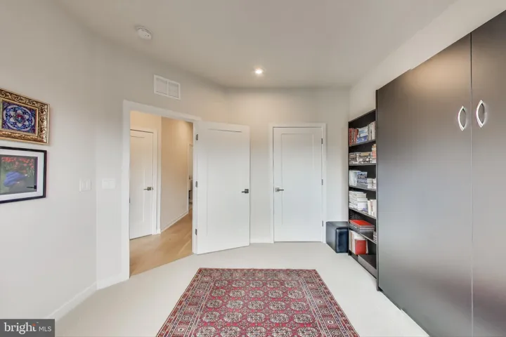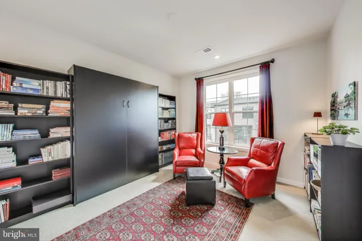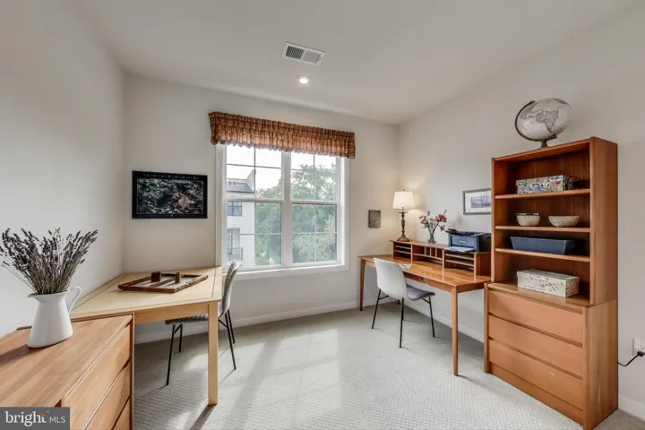 Head up to the bedroom level and explore the well-planned space that includes a luxurious primary suite with walk-in closet and spa-inspired en suite bath beautifully tiled, featuring double sink as well as separate water closet. The second bedroom – suitable for guest room or study – includes a Murphy bed and book shelf lined wall. The attractive hall bath is close to bedrooms two & three. Also on this level is a grand windowed laundry room. In addition to washer & dryer there is a deep sink, shelving and space for storage.