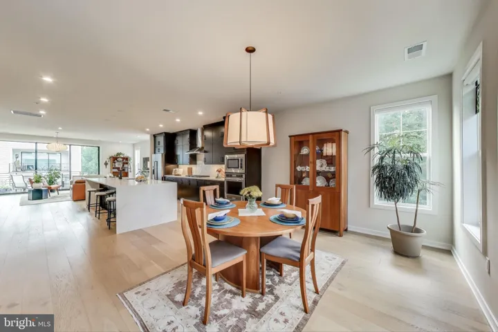 From the moment one steps into the entry it is clear this 4-story end unit stands above the rest with its carefully chosen upgrades to enhance the pleasure of being “at home”. A floor plan well suited for entertaining or “home alone” time, the high ceilings, engineered hardwood flooring, the expansive main level deck and wide open light-filled interior invites one to simply linger and enjoy the space. The chef’s kitchen with upgraded Kitchen Aid appliances, backsplash to ceiling, under-counter lighting, ample storage with “stacked” country cabinets to ceiling height and double-doored panty inspires images of gatherings around the quartz expanded waterfall island and extending from the dining room through the open floor plan through the stacking multi-panel doors to the outdoors of the balcony. What a wonderful space!
