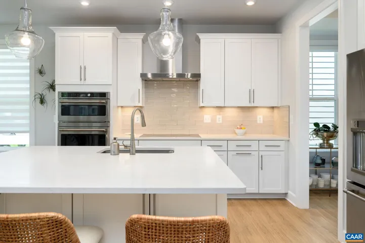 MOVE IN READY 2023 built home is BETTER than new thanks to extensive upgrades (many no longer offered by builder!) and thoughtfully selected design elements. Stylish, low-maintenance 4 BR, 3.5 BA home overlooks a babbling brook in vibrant Crozet neighborhood. Abundant natural light and open layout make every inch feel comfortable and inviting. Tasteful, sophisticated finishes deliver a chic, contemporary vibe. The kitchen shines with supersized island, gleaming custom tile, Carrera quartz, and high-end appliances. Noteworthy “extras” include convenient mudroom, loads of storage, and flex space off kitchen for expanded pantry/homework center. Enjoy wooded views from the family room or relax on the rear deck (with motorized awning!). Open, turned staircase leads to a flexible 2nd-floor loft?suited for play area, teen lounge or office. Luxe primary suite features spa-like shower, dbl vanity, walk-in closet & adjacent laundry rm. Two additional bedrooms are large, featuring walk-in closets. The mostly finished basement adds a bright Rec room, bedroom and full bath. Walk to downtown Crozet, restaurants, shops, library, and top schools from this friendly neighborhood complete with trails, clubhouse, fire pits, grills & play spaces.,Painted Cabinets,Quartz Counter,White Cabinets