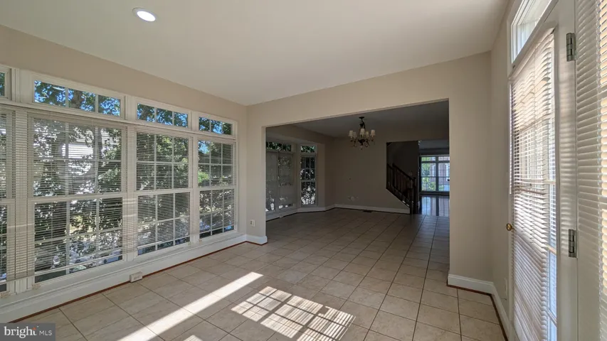 Tile floors in kitchen, family room, and sunroom