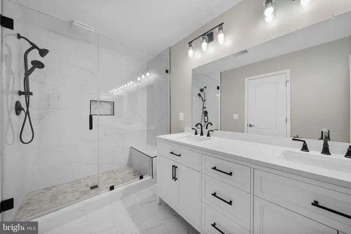 Upstairs, the renovated primary bathroom boasts a frameless glass shower with floor-to-ceiling tile, a double vanity, and modern finishes. The hall bath and main-level powder room have also been tastefully updated. All bedrooms include new ceiling fans for added comfort. New blinds installed on all three levels.