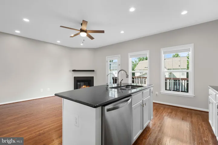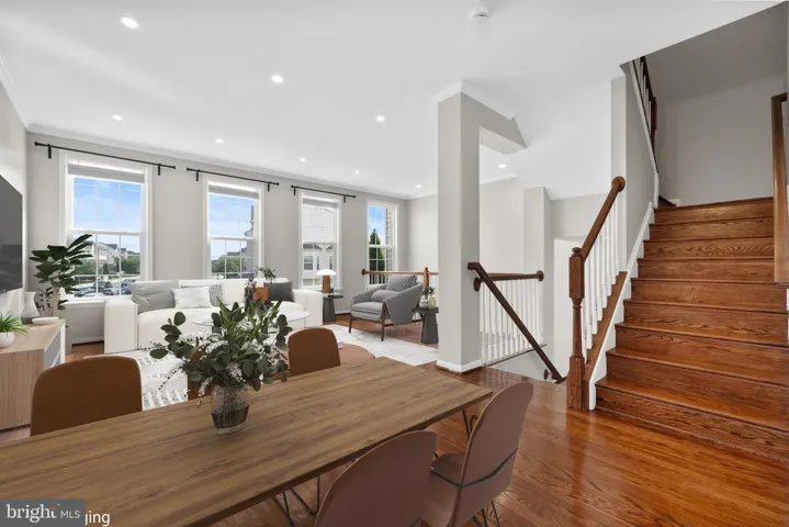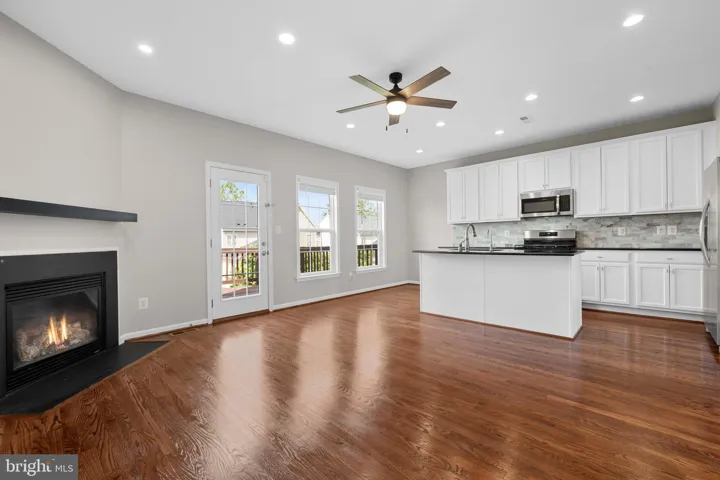 This beautifully updated 3-bedroom, 3.5-bath townhome offers over 2,400 square feet of light-filled living space with tons of recessed lighting installed in the kitchen, living room and rec room. Enjoy refinished hardwood floors on the main level, fresh paint throughout, and new carpet. The open-concept kitchen features new appliances, white cabinetry, a stylish tile backsplash, a large center island, and a sunny eat-in area with a fireplace—perfect for everyday living and entertaining.