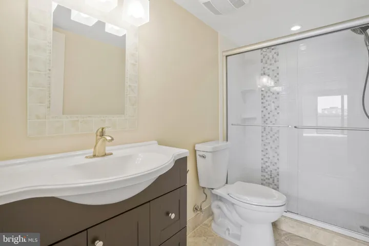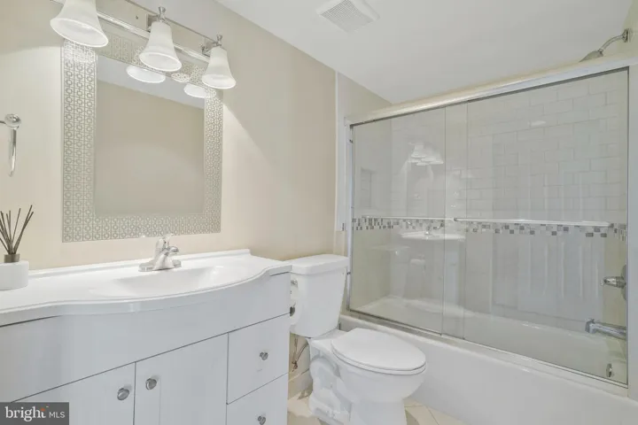 The condo has upgraded engineered hardwood floors in the foyer, the dining room, and the living room. The living room offers a comfortable environment with new sliding doors leading to a generous balcony, where you can enjoy the views of Tysons Corner and McLean’s skyline, creating the perfect spot for relaxation or savoring your morning coffee.