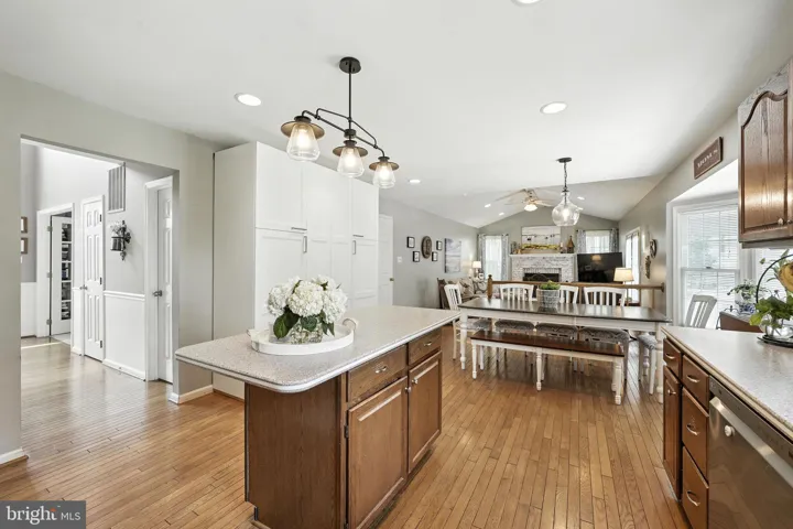 Main Level: Step into a beautifully light-filled, open-concept living space. The upgraded kitchen features stainless-steel appliances, oak cabinetry, Corian countertops, and a custom-new built pantry in a white shaker style finish —perfectly marrying form and function. A casual dining area with an elegant bay window seamlessly flows into the family room, where vaulted ceilings and a brick, wood-burning fireplace add charm and warmth. Gleaming hardwood floors unify these spaces. Nearby, a renovated powder room off the foyer and a laundry room with abundant storage add practical convenience. The laundry also offers direct entry to the spacious two-car garage. Adjacent to the foyer, a serene home office with French doors provides an ideal environment for remote work or quiet study. Opposite, the formal living and dining rooms offer plush carpeting and graceful spaces for hosting seasonal gatherings. Upper Level: Ascend to find four generously sized bedrooms. The primary suite is a true retreat, boasting a luxurious spa-style bath—an ideal sanctuary to begin and end each day. The three additional bedrooms share a beautifully renovated full bathroom.Lower Level: