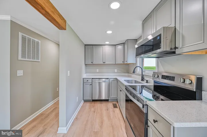 Inside, you’ll find a bright and inviting atmosphere with fresh paint throughout and elegant new crown molding that adds a touch of sophistication. The entire interior has been upgraded with new vinyl flooring, providing a sleek and low-maintenance finish.