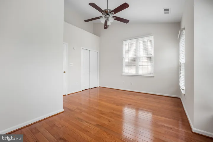 The upper level boasts two generously sized and sunlit suites. The primary suite includes a large walk-in closet and an ensuite bathroom with high ceilings and a skylight. The second suite is equally impressive with abundant natural light pouring through three big windows.