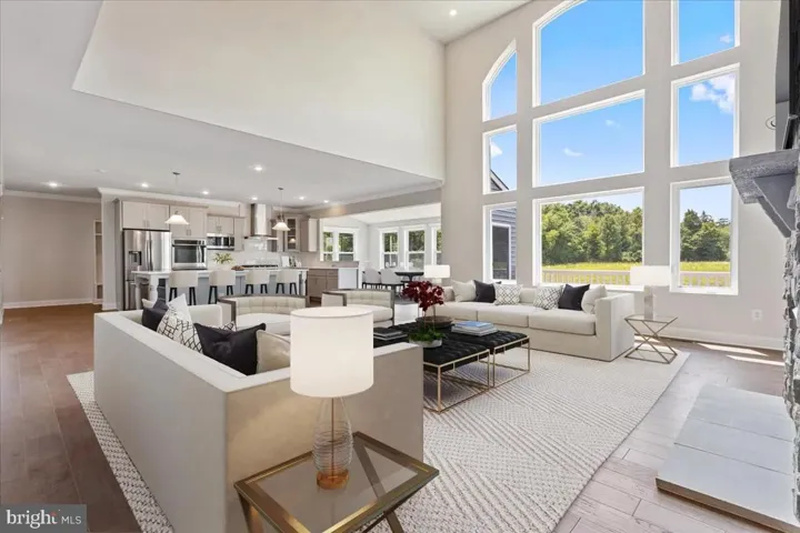 Discover the exquisite Reagan floorplan, a masterpiece that immerses you in natural light. This striking home features a breathtaking 2-story family room and foyer, seamlessly connecting to an expansive main level designed for modern living and entertaining. The family room, graced by a stunning two-story stone fireplace and a wall of windows, creates a warm and inviting ambiance perfect for family gatherings and entertaining guests.