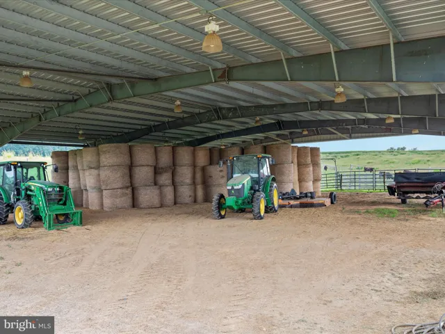 The property is exceptionally well-equipped for both livestock and farming. It boasts two wells, two conventional septic systems, and an array of outbuildings, including a massive equipment building, a silo, and a riding rink. The land is fenced and cross-fenced, making it ideal for livestock and crops. Approximately 40 acres are wooded, providing a beautiful natural backdrop.