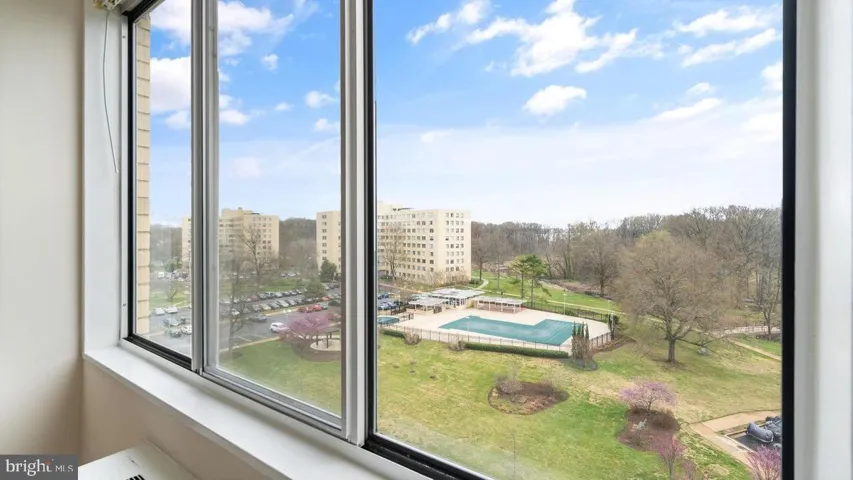 Condo fees cover all utilities except internet and cable. Community amenities include a swimming pool, tennis and basketball courts, fitness center, garden areas, picnic spots, and scenic walking trails. A bus stop right outside the building connects you to the Huntington Metro (Yellow Line).