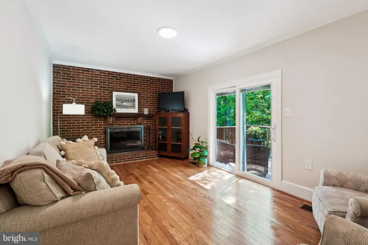 The family room, centered around a classic brick wood-burning fireplace, flows seamlessly to a spacious deck with tranquil wooded views—ideal for evening dinners or weekend lounging. The main level is ideal for entertaining with a spacious formal dining room and an impressive living room with space for a piano.