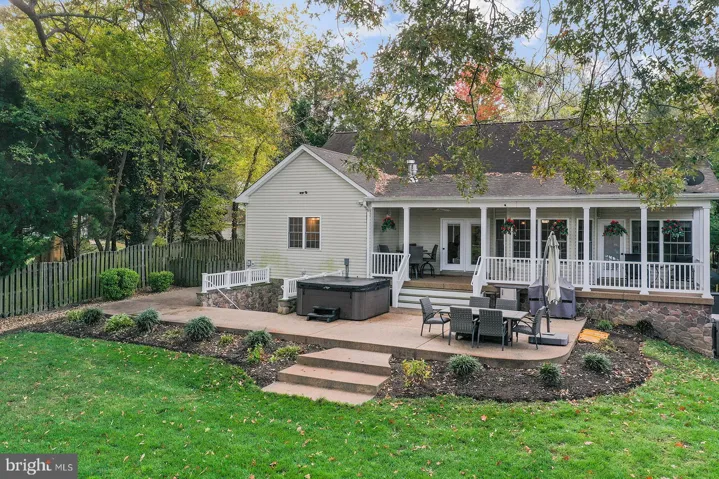 The finished lower level offers a guest suite, wet bar, theater/rec room, and walk-up access to the patio to backyard. Outdoor living includes a large hot tub, patio with gas line for grilling, and lush landscaping with Rainbird irrigation.