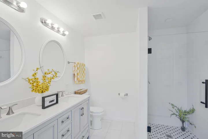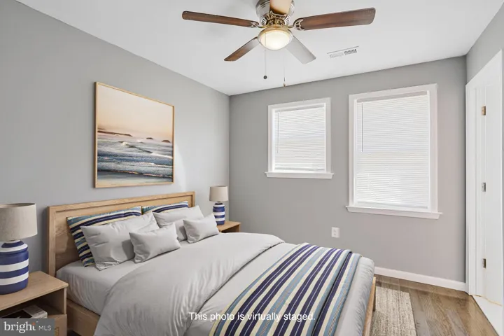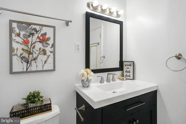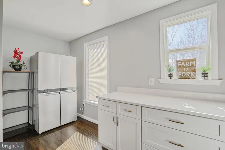 The main level houses 3 bedrooms and 2.5 bath with one bedroom having an ensuite bathroom with a shower. The other two bedrooms share a bathroom. The large open gourmet kitchen showcases quartz countertops and stainless steel appliances. There is ample room for a table. The living and dining areas extend through the remainder of this level. Hardwood floors span throughout the entire home…almost 2200 sq. ft of living space. The back of the room leads to the garage and opens up to a laundry area and powder room.