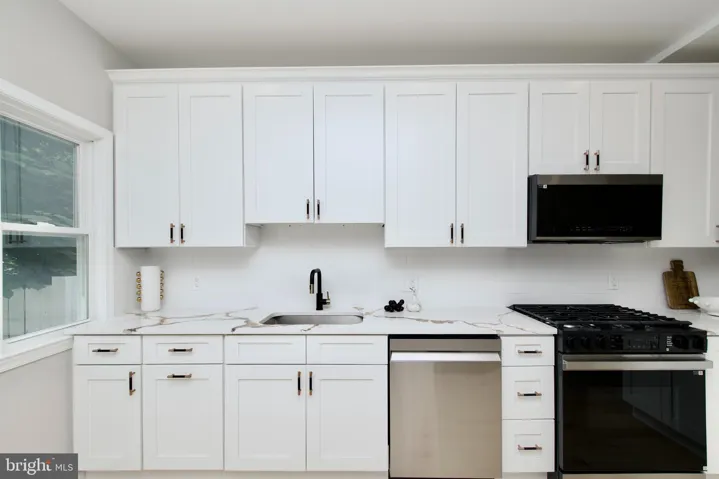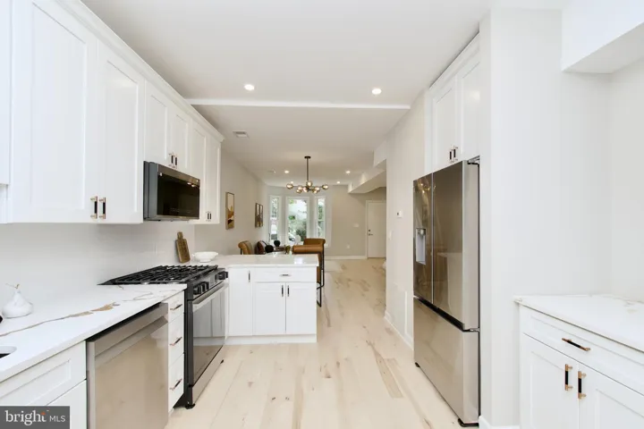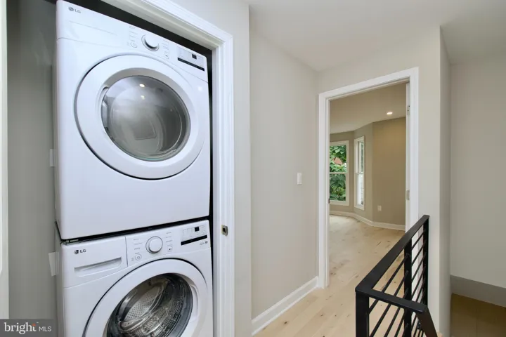 Step inside to open, light-filled spaces featuring brand new hardwood floors and a stunning new kitchen with high-end quartz countertops, modern cabinets, and top-of-the-line appliances that opens to a private deck and fenced backyard. Main level offers a stylish half bath and storage closet. Upstairs boasts 2 fully remodeled bathrooms with designer-selected tiles, vanities, and finishes. Full size washer /dryer.