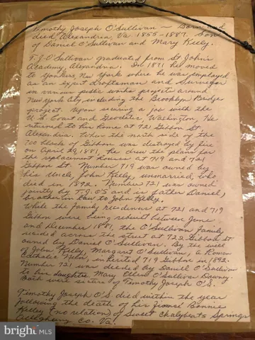 At the crossroads of heritage and modern living, 719 Gibbon Street is a one-of-a-kind residence built in 1873 by Daniel and T.J. O’Sullivan. Nestled on a tree-lined block in the heart of Old Town Alexandria’s coveted southeast quadrant, this meticulously preserved and thoughtfully updated Federal-style rowhouse offers a rare combination of historic character, outdoor living, and urban convenience. Inside, you are greeted by a dramatic entry foyer with soaring ceilings, original millwork, and gleaming hardwood floors that flow through the sun-filled main level. The elegant formal dining room centers the home and connects to both a bright living room with gas fireplace, and a beautifully renovated kitchen outfitted with granite countertops, Miele refrigerator, beverage fridge, wall oven, gas cooktop with downdraft, and a breakfast island. Oversized French doors open to a showstopping private brick courtyard, professionally landscaped with raised garden beds, lush plantings, and a fruiting apple tree— a truly rare sanctuary in the heart of the city. Beyond the courtyard gate, enjoy two deeded off-street parking spaces accessed via a rear alley — a premium feature in Old Town. Upstairs, two bedrooms are filled with natural light and complemented by two full bathrooms, including one with a jetted soaking tub. The fully finished lower level offers a flexible suite perfect for guests, a home office, family/media room, or play space — complete with a third full bathroom and walk-up stair access to the garden. Located just five blocks to King Street and five blocks to the Potomac waterfront, you’re moments from Old Town’s finest dining, shopping, marina, parks, and trails. With immediate access to I-95 and the Beltway, and just minutes to National Airport and Amazon HQ2, this home is as connected as it is serene. The O’Sullivan House isn’t just a home — it’s a story. A slice of Alexandria’s architectural past, lovingly maintained for modern life. Opportunities to own homes of this provenance, privacy, and location are exceptionally rare. Parking and Garden!