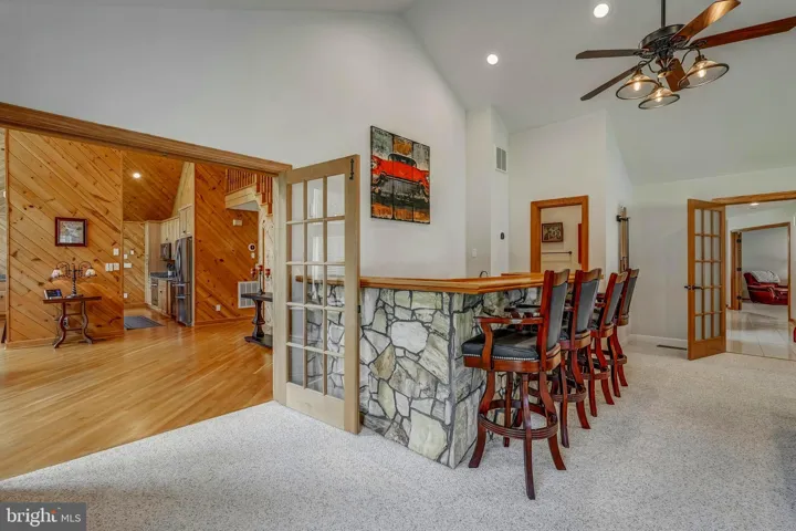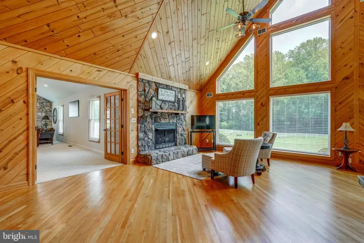 Welcome to your dream retreat at Lake Anna! Nestled in the desirable Sunning Hills subdivision on the public side of the lake, this stunning water-access custom home offers the perfect blend of luxury and relaxed lake living. It includes assigned boat slip #8 in the private community common area, which features easy lake access, a boat ramp, sandy beach, covered picnic pavilion, and more. This spacious 5-bedroom, 3 full and 3 half-bath home is handicap accessible, comes fully furnished, and offers over 3,700 finished square feet of thoughtfully designed living space. The open-concept main level features soaring 22-foot vaulted wood ceilings, a dramatic wall of windows, solid hardwood floors, and a striking stone gas fireplace in the great room. The kitchen is equipped with stainless steel appliances, granite countertops, a breakfast bar with seating, and a wine rack above. Step through the French doors into a massive recreation/family room, complete with a wet bar, floor-to-ceiling stone fireplace, half bath, and a conveying pool table—the ultimate gathering space! The primary suite features a walk-in closet and a fully remodeled, handicap-accessible bath with a roll-in tiled shower, grab bars, soaking tub, ADA-compliant commode, and beautiful finishes. A home office and dedicated laundry room are also located on this wing. Two additional bedrooms and a full bath with a secondary laundry area complete the main level. Upstairs, you’ll find two more spacious bedrooms: one with a full bath, the other with a half bath—perfect for guests or extended family. Additional highlights include a finished 2-car attached garage with a half bath and HVAC, plus a massive 40×60 detached, climate-controlled 6-car garage/workshop with heating and air conditioning. The beautifully landscaped 1.47 acre lot features a paved driveway, a covered porch for peaceful mornings, and a spacious back patio ideal for grilling, dining, and entertaining, all designed for low-maintenance enjoyment. Stay connected with high-speed Firefly fiber internet while enjoying the laid-back lake lifestyle. Major upgrades include: New roof (2024) with 6-nail-per-shingle installation and 25-year warranty, New AC and propane furnace (2022). whole-house Generac generator (2020), Wi-Fi thermostats and remodeled primary bathroom. This turn-key Lake Anna property has it all—curb appeal, space, upgrades, storage, and style. Whether you’re searching for a full-time residence or an upscale weekend escape, this home checks every box. Come see it for yourself and start living the Lake Anna lifestyle you’ve always dreamed of!