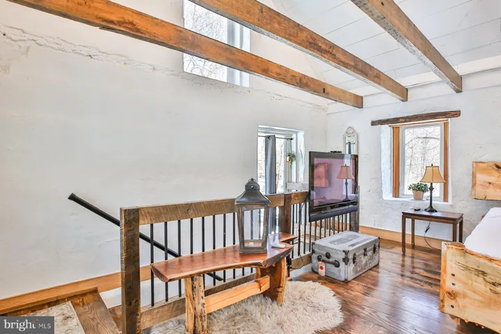 Tucked between the charming villages of Waterford and Lucketts, this enchanting 1800s stone cottage rests on just over 23 secluded, wooded acres, offering a rare blend of historic character, modern updates, and craftsman creativity. Nicely renovated, the one-bedroom, one-bathroom cottage features a corrugated metal roof, hardwood floors, hand-hewn wood beams, and a cozy loft bedroom. The thoughtfully designed kitchen includes an eat-in area, and the full bath offers a walk-in shower, all with rustic yet refined finishes.
