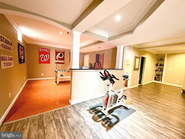 The main level showcases gleaming hardwood floors, a bright family room with a gas fireplace, and dedicated office space. The fully finished basement includes a large rec room, full bath, wet bar, game room, and an added bedroom — ideal for entertaining or multigenerational living.