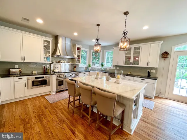 Featuring 5 bedrooms and 4.5 bathrooms across three finished levels, this home blends timeless elegance with modern upgrades. The custom chef’s kitchen, beautifully remodeled in 2017, is the heart of the home — boasting a striking center marble island, sleek leathered granite countertops, a Sub-Zero refrigerator, Wolf steam oven, and a top-of-the-line dual fuel range with griddle and double ovens — a true culinary dream.