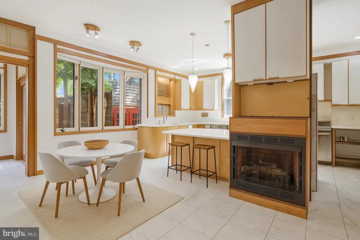 Inside, the home showcases a harmonious mix of oak, cherry, marble, and tile flooring throughout. The fully finished basement offers a luxurious retreat with a sauna and travertine-tiled shower. A flexible floorplan includes in-law quarters and a private office or library adorned with Turkish tile floors and its own radiant heat. Culinary enthusiasts will appreciate two well-appointed kitchens, including a fully renovated 2021 chef’s kitchen with quartz countertops, a custom cooktop, and premium finishes.