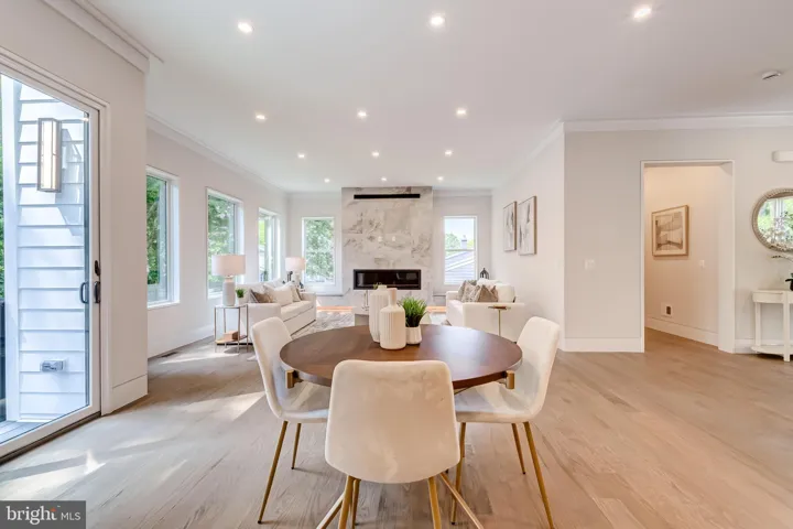 Expansive windows frame serene outdoor views, bathing the interiors in ever-changing natural light and lending a vibrant energy throughout. Seamlessly connected to the gourmet kitchen and casual dining area, the open-concept living room is perfect for lively gatherings or peaceful escapes. Anchoring the space is a striking gas fireplace—modern in its industrial form yet warmly inviting—creating a stunning focal point.