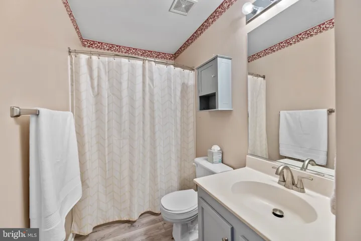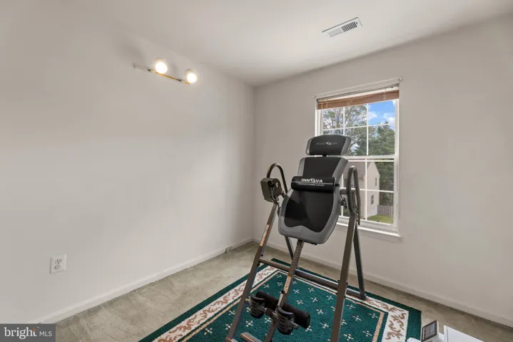 Nestled in a residential area of Woodbridge, Virginia, the townhouse at 15086 Jarrell Place offers an inviting home, ready to move in. The living room is defined by its beamed ceiling, offering a comforting space, creating a welcoming atmosphere for relaxation. The kitchen features shaker cabinets and a kitchen peninsula, providing a functional space for meal preparation. The bedroom offers the convenience of an ensuite bathroom, complete with a walk-in shower. The fenced backyard presents a private outdoor retreat, enhanced by a patio, a fire pit, and an outdoor dining area, offering the perfect setting for relaxation and entertaining. This three-story townhouse offers a comfortable and stylish living experience.