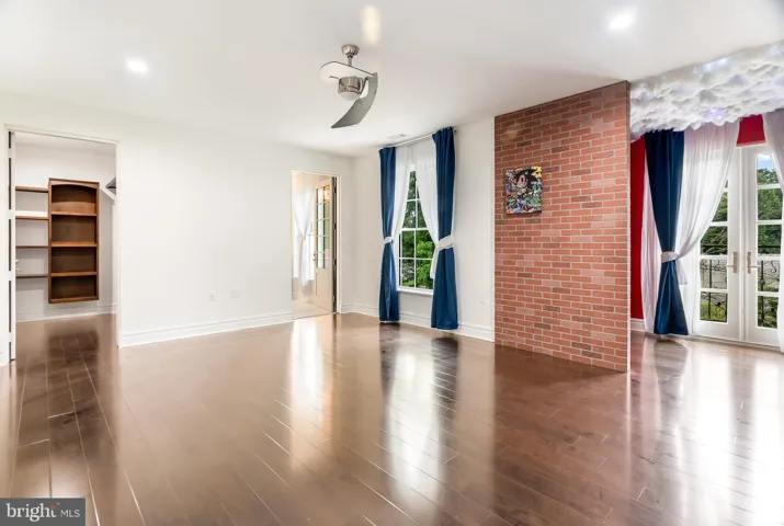 Upstairs, the second level boasts gleaming hardwood floors, five generously sized bedrooms—each with its own uniquely tiled en suite bath, walk-in closet, and ceiling fan—plus a versatile den. A cozy landing with French doors opens onto a balcony that offers sweeping views of the manicured front lawn.