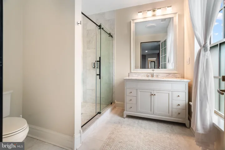 A full bathroom and an additional den with closet complete the lower level, offering ideal accommodations for overnight guests or a live-in au pair.