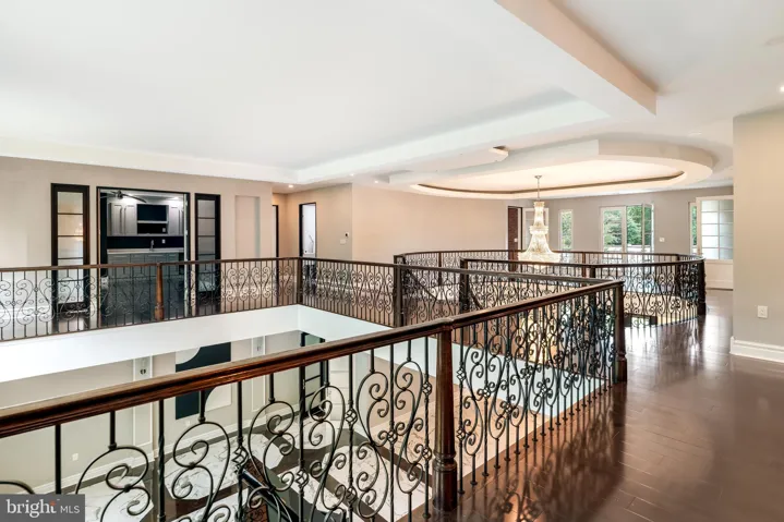 To the right, a richly paneled study with custom built-ins and a stylish half bath offers a quiet retreat. To the left, the formal dining room dazzles under a statement chandelier, designed to comfortably seat 12 with a built-in serving station for effortless entertaining.