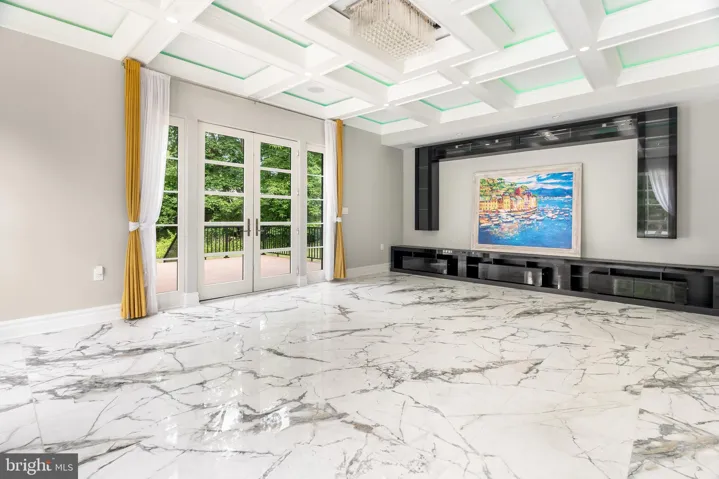 Adjacent, the coffered-ceiling family room exudes warmth and intimacy, opening onto a brand new Trex deck and expansive yard complete with a three car, climate controlled garage. Tucked nearby: a powder room, hidden bookshelf closet, secondary staircase, and passage to a show-stopping two-story living room lined with floor-to-ceiling windows and anchored by a sleek gas fireplace.