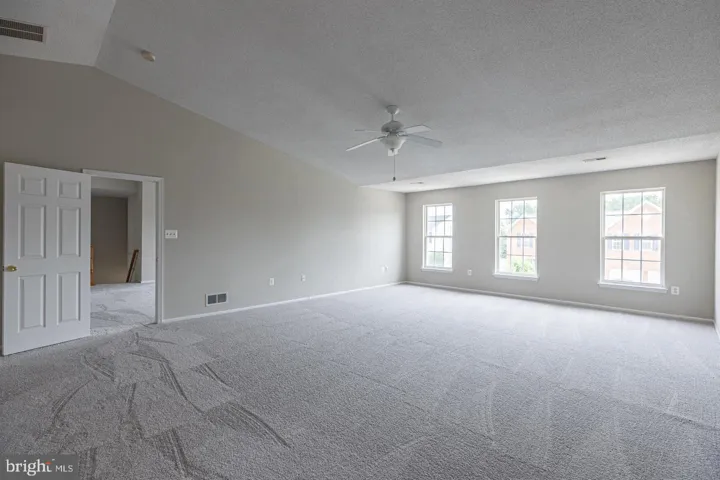 The luxurious owner’s suite includes a private sitting room, a spa-like soaking tub, and an oversized walk-in closet. A spacious loft with cathedral ceilings provides additional living or office space. Every bedroom in the home features its own walk-in closet, ensuring ample storage throughout.