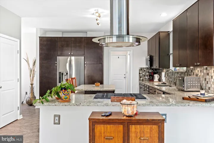 Inside, you’ll find a bright and airy layout with soaring ceilings and large windows that flood the home with natural light. The heart of the home—the upgraded kitchen—features granite countertops, stainless steel appliances, a gas cooktop with downdraft ventilation, and rich cherry cabinetry that delivers both beauty and function.