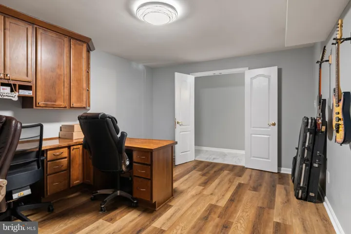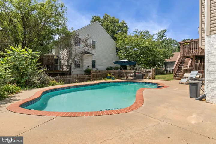 The expansive 20×19 family room is filled with natural light and centers around a gas log fireplace with a charming wood mantle. The dine-in kitchen has a center island, 42” cabinets, all new gas cooktop, new built-in microwave, double wall ovens, a new stainless steel refrigerator with water & ice, a built-in desk area, walk-in pantry, and sliding doors leading to the deck. A mudroom off the kitchen connects to the 2-car garage. A main-level office with luxury vinyl (possible 7th bedroom) and a stylish half bath with ceramic tile and pedestal sink round out the main floor. Upstairs, the primary suite offers one large walk-in closet, ceiling fan with light, and a luxurious en-suite bath with ceramic tile, soaking tub, separate shower, double vanities, and a private commode. Four additional bedrooms, all newer carpet with ceiling fans and closets and 1 shared full hall bath. The lower level is ideal for an in-law or au pair suite, complete with a large recreation room, a second kitchen with recessed lighting, cabinetry, sink, mini fridge, and walk-out access to the pool deck—perfect for entertaining! A fifth bedroom with walk-in closet, full bathroom, a built in office/den with added cabinets and office desk. A separate great laundry is in the lower level with a newer washer & dryer. The fully fenced backyard, a playground with wood shipping mulch, sealed concrete deck and a gorgeous lighted in-ground pool—perfect for summer gatherings. Recent Updates: Newer pool filter and pump, sealed concrete pool deck, Water heater (2025) Washer & dryer (2020) Pool pump is 1 year old, HVAC for lower and main level 2023, new luxury vinyl all through main floor 2023. Other upgrades in 2023- washer, dryer, stove, dishwasher, refrigerator, added 5th bedroom at upper level, added den/office at lower and laundry room at lower level.