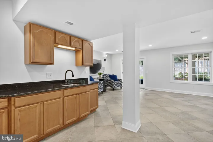 The fully finished walk-out basement is ideal for guests, in-laws, or entertaining, featuring a kitchenette with a sink and refrigerator, a full bathroom, a large open living area, a dedicated exercise room, and a second laundry room for added convenience. It opens directly to the stone patio and backyard, adding even more functional space.